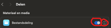Activeer bestanden delen via toggle knop. Via de info knop kunnen we verder instellen.