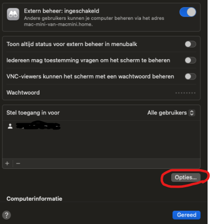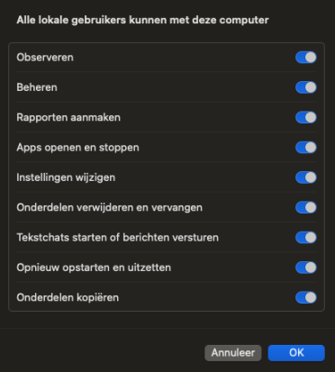 Met de opties knop kunnen we kiezen wat gebruikers kunnen beheren.
